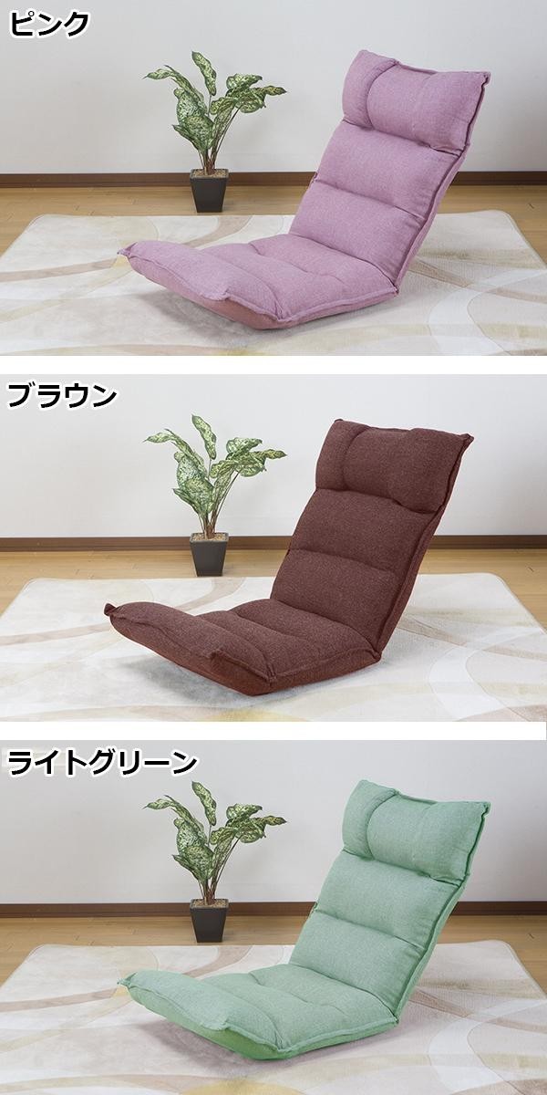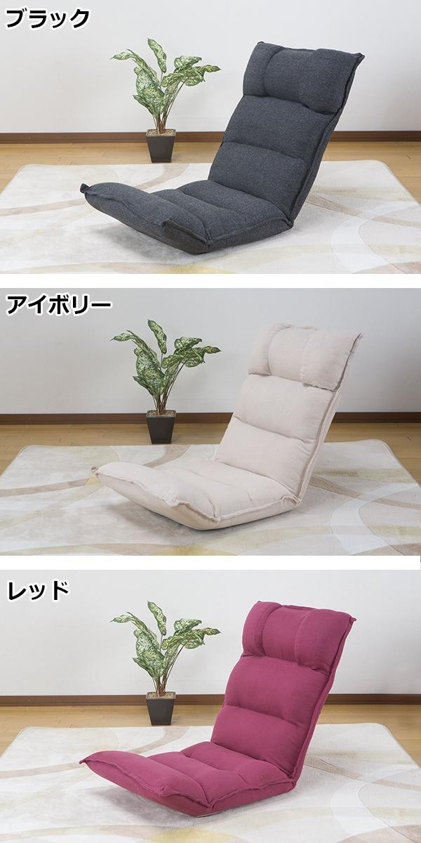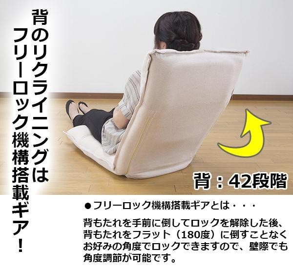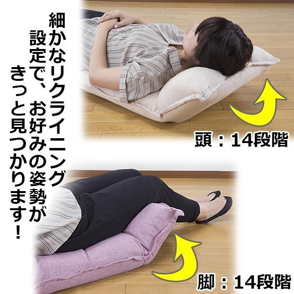 | 頭・背・脚の3ヵ所がリクライニングする、低反発素材の座椅子。 |