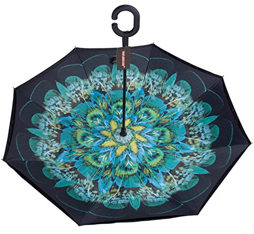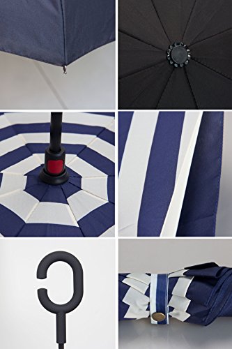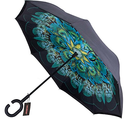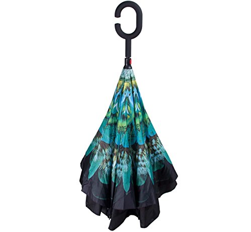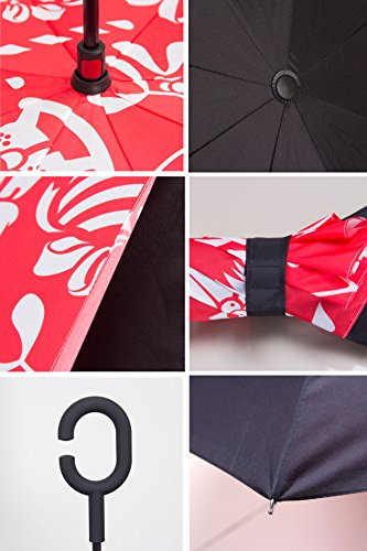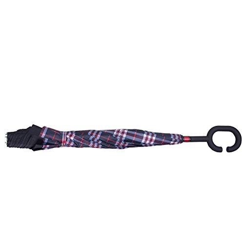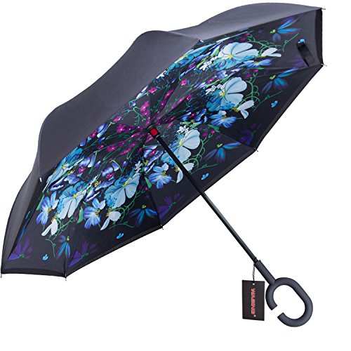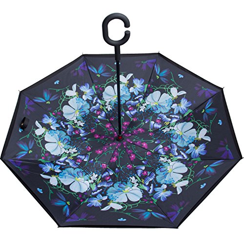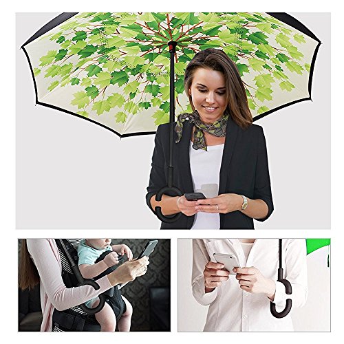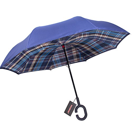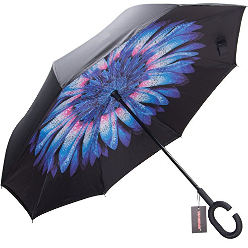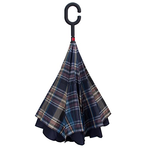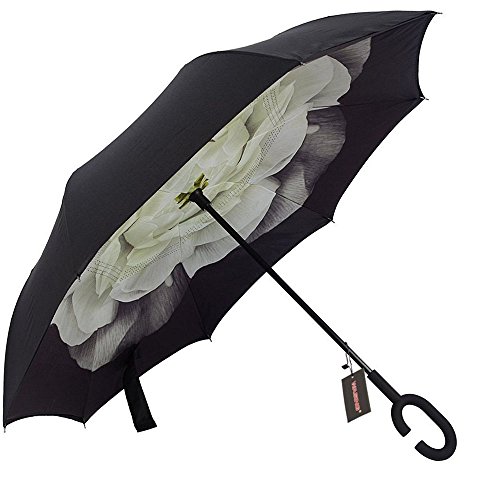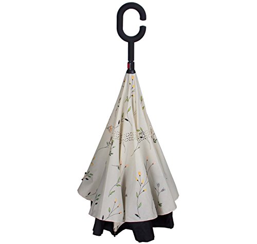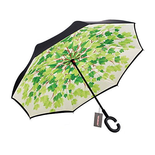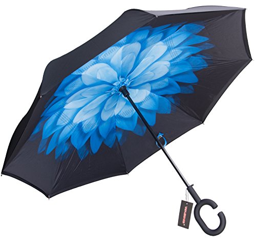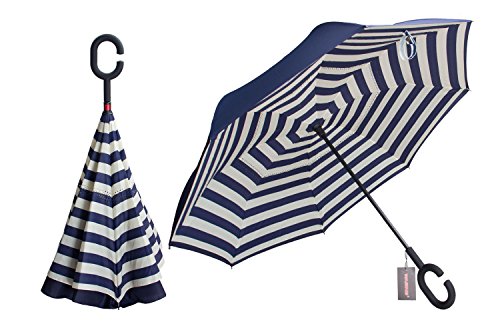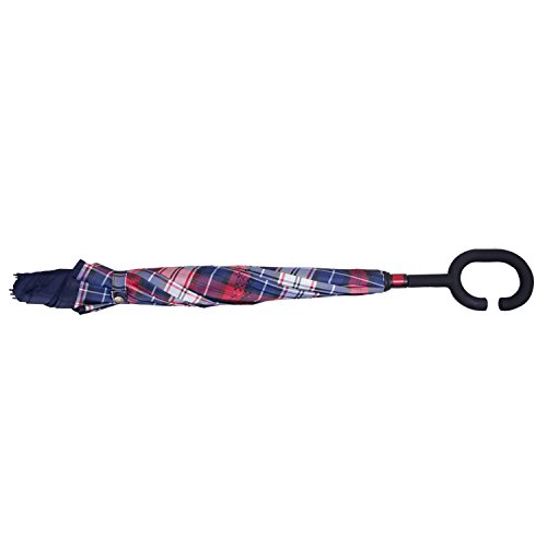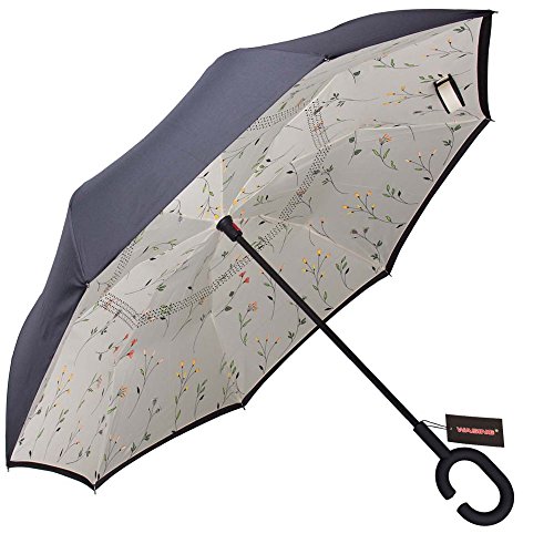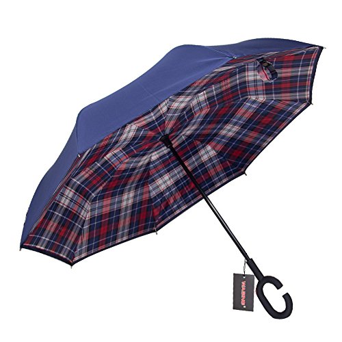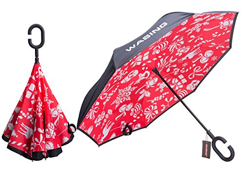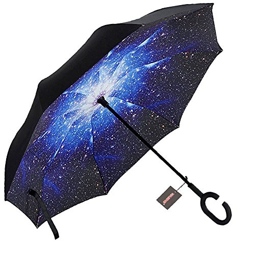Have you ever encountered such a problem in rainy days? When you jump on a crowded train after escaping a downpour your dripping wet umbrella usually brushes up against your bag, your clothes or -even worse- a stranger. But by inverting the design, the wet side of the umbrella faces inward when closed, exposing only the dry side. And that's not all: the creative design makes it easier to open when coming out of a car or other covered area, and when not in use the umbrella can stands up on its own! Double layer Inverted umbrella Unique design double layer inside out umbrella, make it easy for you on raining day, won??t wet your car, documents or others. Advanced double layer ribs made the inverted umbrella more sturdy. 23 in X 8 Panels is large enough for Many People . Easy to Operate and Safe to Use With a simple click of the embedded button, you can open and close the umbrella in confined spaces when entering or exiting a building or car and it's less awkward and more safer to open and close when in crowds, since the danger to poke in people's eyes has been removed by the design. Convenient to place and drip free It can stand up on its own, ideal for when you have nowhere to prop your umbrella up against. It will also keep the wet part of the umbrella inside once you've closed it, so things don't get dripped on when you put it away after coming indoors. Durably windproof The straight umbrella easily slices through all winds. Due to its aerodynamic design, the umbrella always finds the most comfortable position in the wind which makes it exceptionally pleasant to use, even in strong gales. If the canopy flips, it can be rectified at the push of a button. Package Contents: 1 x Inverted umbrella 0