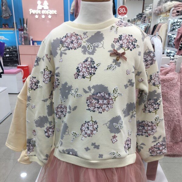 안감은 기모로 촉감과 보온성을 높였구요~ 밑단은 핑크색 레이스가 러블리해요~ 마치 맨투맨과 치마를 같이 매치한듯한 고급스러우면서도 귀여운 원피스랍니다~^^