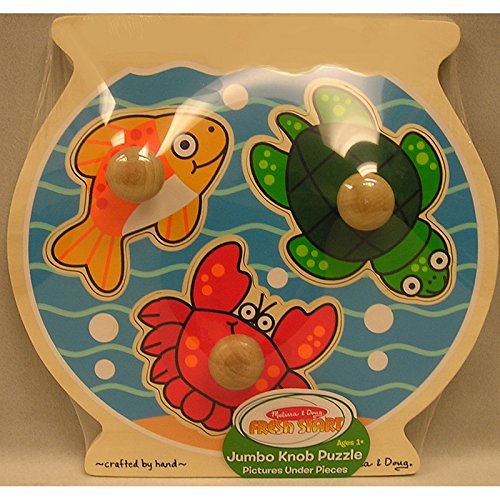 Studio : MELISSA DOUG Publisher : MELISSA DOUG Binding : Kitchen Product Description A cute fishbowl with three happy residents for puzzle play. This extra thick 3-piece wooden puzzle includes a fish, a turtle and a crab, each with jumbo wooden knobs for easy grasping. Full-color, matching pictures appear underneath each piece. A great activity to encourage eye-hand and visual perception skills. 0