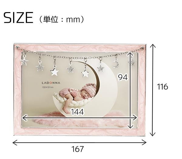 | キラッと輝くクリスタルが赤ちゃんの表情を引き立てます。出産祝いの贈り物としてもおススメです。 |
