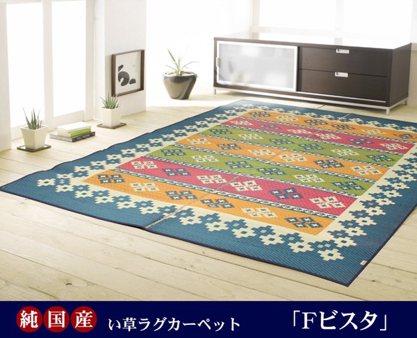 【商品名】純国産 袋織 い草ラグカーペット 『Fビスタ』 ブルー 約191×191cm(裏:ウレタン)