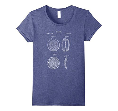 (Vintage Yo-Yo Bandalore YoYo Toy Looping Tee Shirt)/Activities Amusements/Yo-yos/DIRECT FROM USA/Womens Vintage Yo-Yo Blueprint Shirt - Toy YoYo Looping Bandalore Small Heather Blue