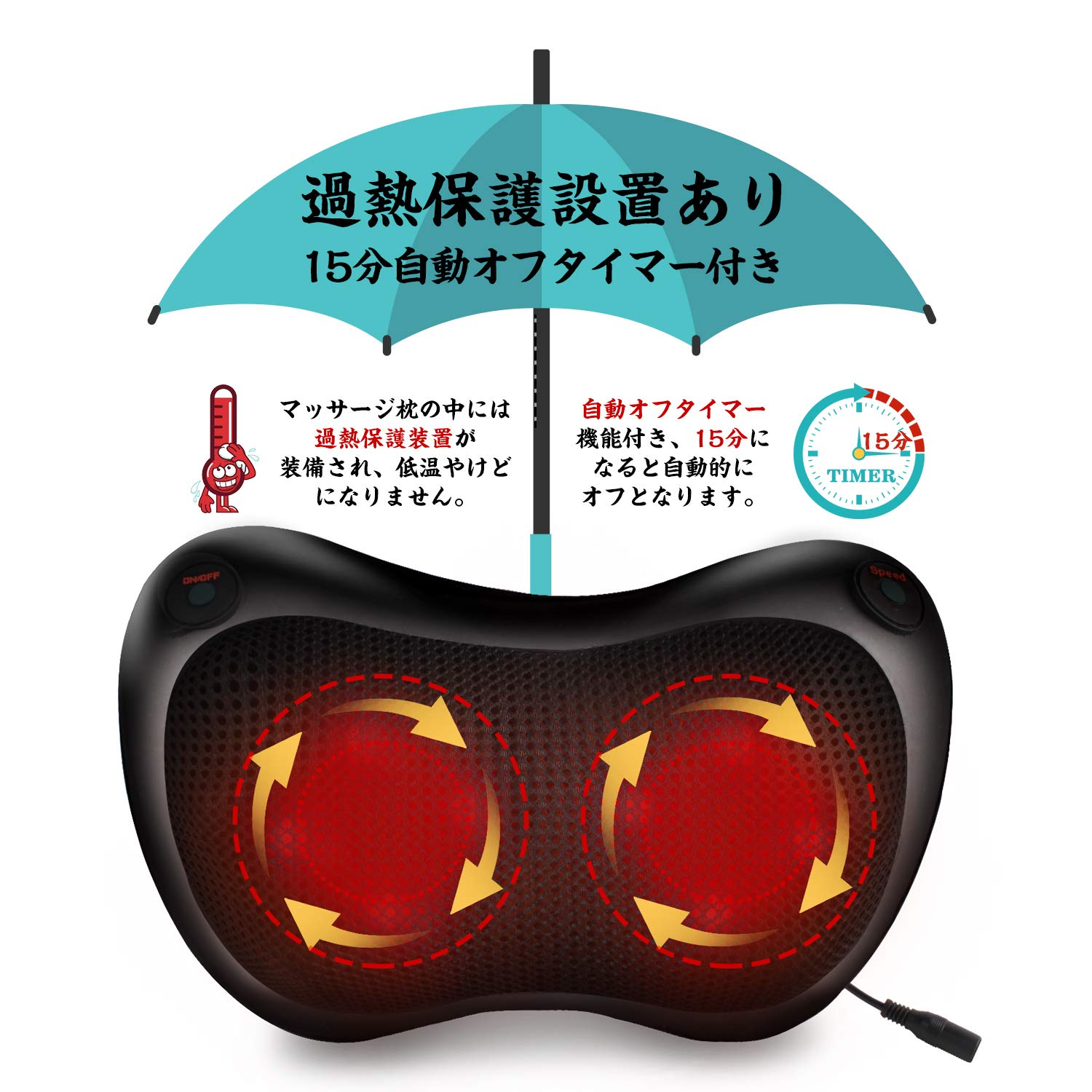 【過熱安全保護&タイマー機能付き】このマッサージクッションには過熱保護設置付きがありますので、15分後もしくは特定の温度になると、本体が自動にオフとなって、安全性が高いです。