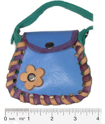 Studio : Craftsmen Publisher : Craftsmen Binding : Toy Product Description Pretty leather purse, handmade, with shoulder strap. Ideal for 4 years old children or older. Dimensions: 3.5 inch length, 3 inch height and 1.5 inch depth. Strap length can vary between 11 and 15 inch (non adjustable). Note: Because the products are handmade, there could be slight differences from the image shown (ie. flower orientation, minor size diference, etc.) 0