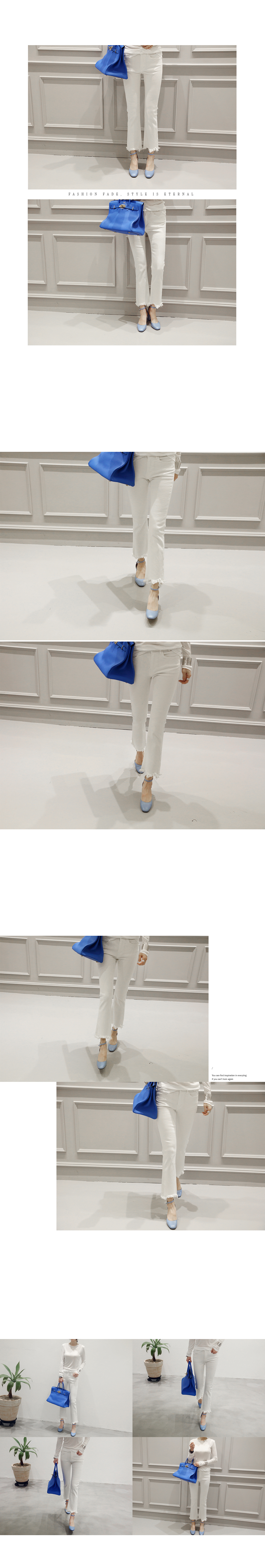 여리여리한 무드의 활용도 높은 아이보리컬러 팬츠 소개할게요.무릎까지 타잇하게 잡아주고 아래로 자연스럽게 퍼지는 부츠컷으로 스키니 팬츠보다레그라인 더욱 슬림해보이고요, 신축성이 너무 좋아 편안한 착용감을 느끼실 수 있어요.밑단 컷팅으로 자연스러운 올 풀림이 밋밋할 수 있는 팬츠에 포인트를 더해주었답니다.상의 스타일에따라 캐쥬얼룩, 오피스룩, 데이트룩 다양한 코디 모두두루두루 소화해 소장하고 계시면 매일매일 손이가게 되실 팬츠랍니다.