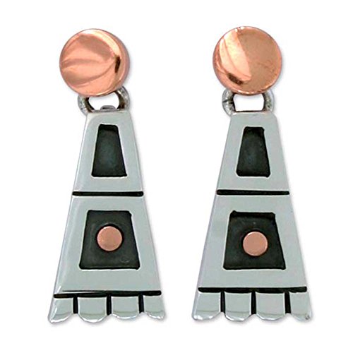 About this item: Aztec ornamentation inspires Maria Belen Nilson in the wonderful design of these earrings. They are crafted with sterling silver featuring radiant copper suns and oxidized accents. .925 Sterling silver earrings and backs. Copper accents. The earrings measure 1.2" by 0.5"