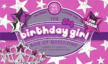 -. Feature : Tiny Birthday Girl Box of Questions 48 Packs Party Favors for Girls / Break the ice or bond with friends over engaging questions / 4 Assorted Styles, 48 Boxes, 21 different questions in each box / A variety of topics will have players thinking, laughing and deepening friendships. / Questions suitable for ages 8+