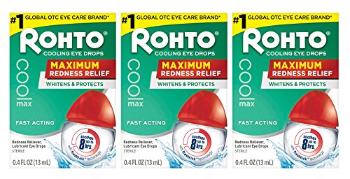Rohto Cool Max Maximum Redness Relief Cooling Eye Drops, 0.4 Ounce, 3 Count