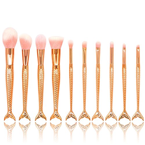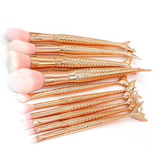 10pcs Mermaid Makeup Brush Set Synthetic Foundation Blending Blush Eyeliner Face Powder Brush Makeup Brush Kit (10pcs Rose Gold)
