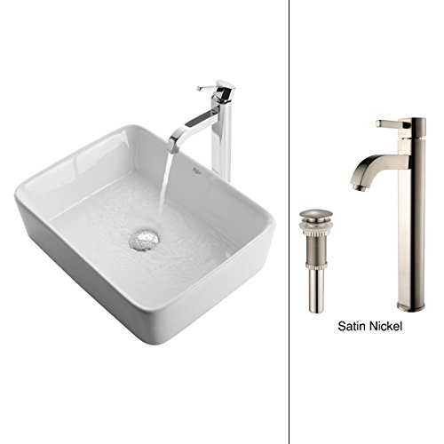 Kraus C-KCV-121-1007SN White Rectangular Ceramic Sink and Ramus Faucet Satin Nickel
