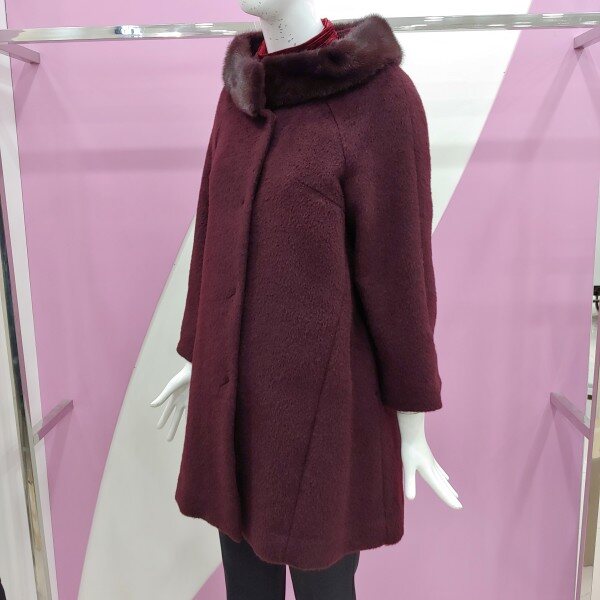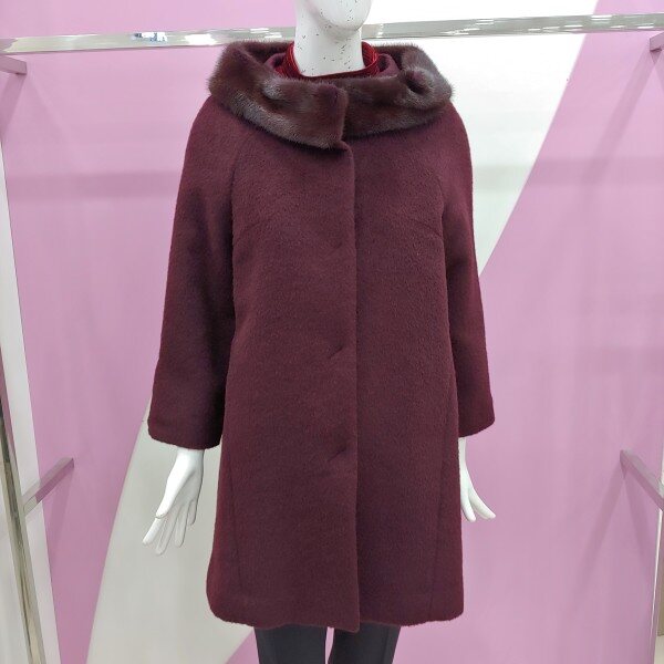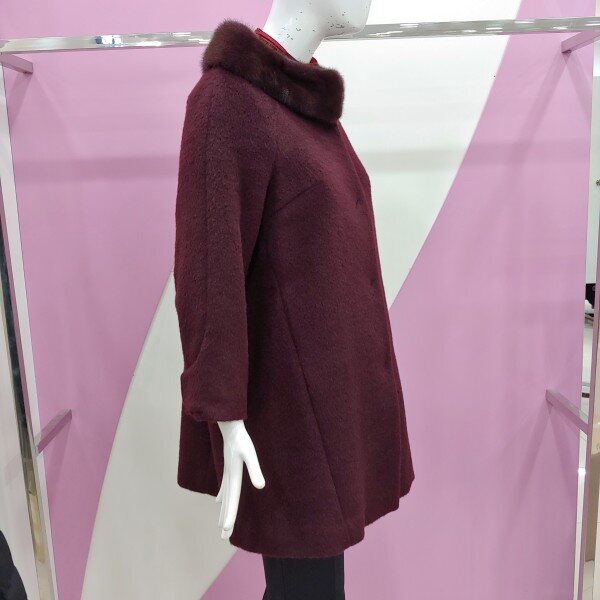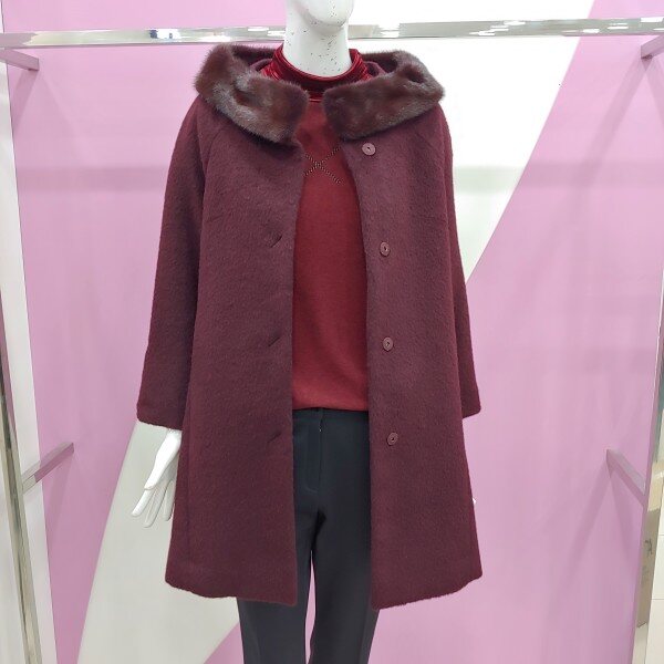 이월제품으로 착한 가격의 아이템.밍크털로 우아함을 울 알파카 소재로 세련되게 표현한 코트.컬러감이 너무 멋스러운 코트.