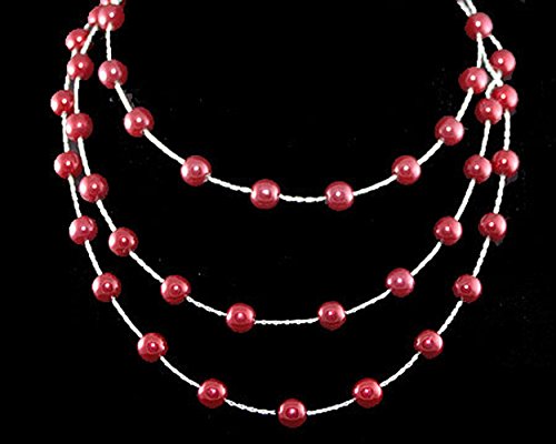 3 rows of cascading Cranberry Red color pearls