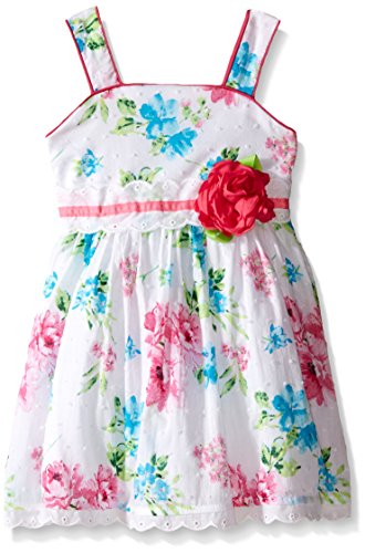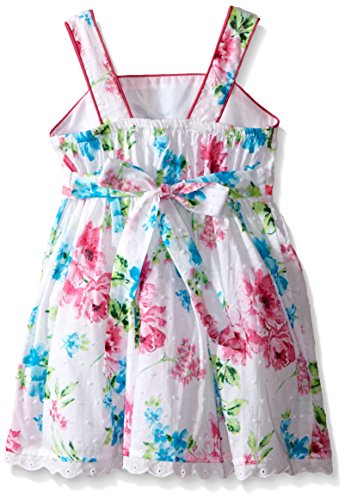 Sweet Heart Rose Little Girls Clip Dot Floral Printed Dress with Tacked On Bow at Left Waist, White/Multi, 5