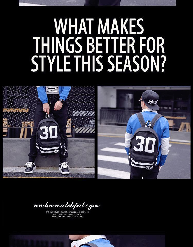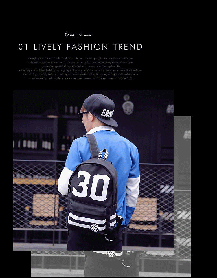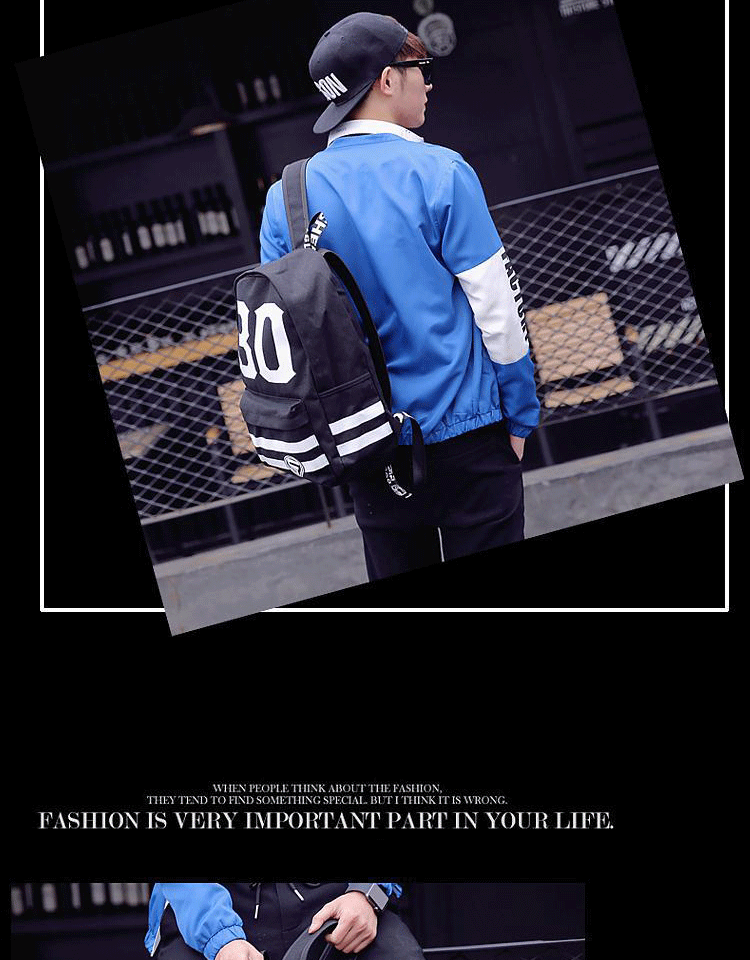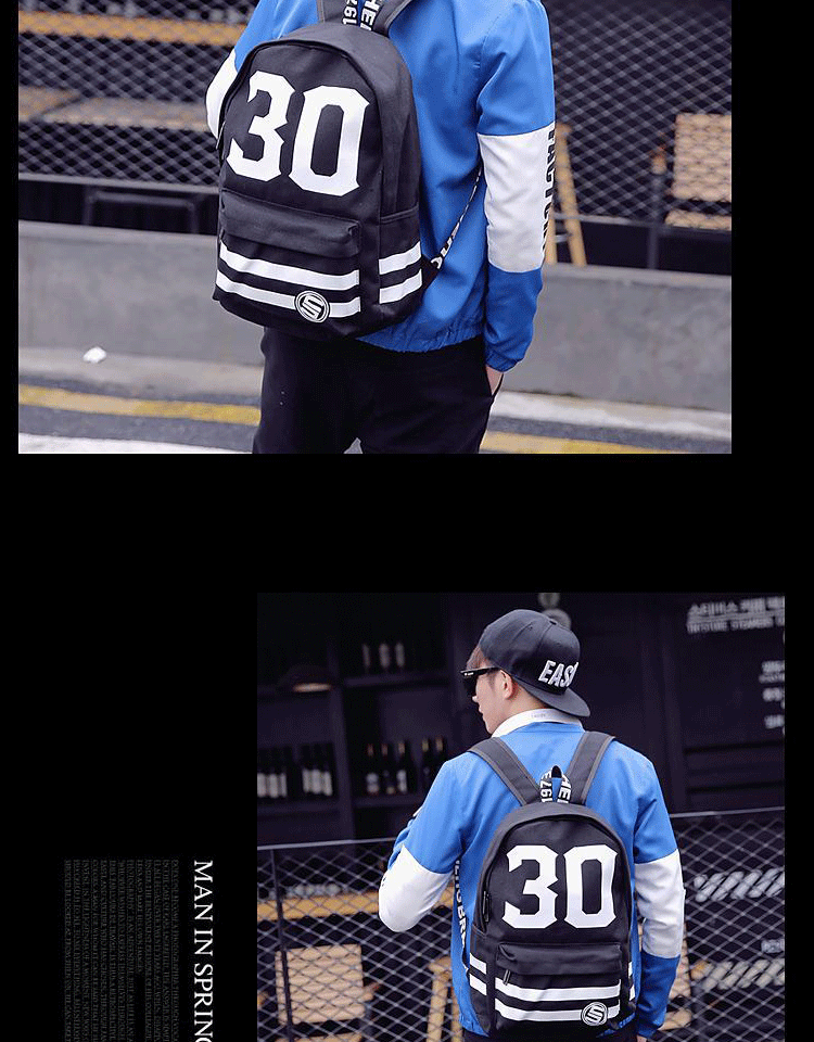 新款韩版潮流男士背包双肩包数字书包中学生男帆布都市校园风