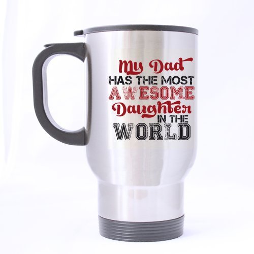 -. Title : Father's Day Gift Mug - 14oz Best Dad Mug from Daughter, My Dad Has The Most Awesome Daughter in The World (Sliver) Mug Stainless Steel Travel Mugs for Dad / Daddy / Father
