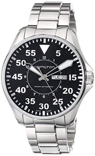-. Binding : Watch -. Brand : Hamilton -. Color : black -. Department : Mens -. EAN : 7640127752869 -. Feature : Day date / Black dial / fold-over-clasp-with-double-push-button-safety. / Luminous hands; Round case / Water-resistant to 660 feet (200 M) -. IsAdultProduct : 0 -. Label : Hamilton -. Manufacturer : Hamilton -. Model : H64715135 -. MPN : H64715135 -. PackageQuantity : 1 -. PartNumber : H64715135 -. ProductGroup : Watch -. ProductTypeName : WATCH -. Publisher : Hamilton -. ReleaseDate : 2014-09-30 -. Studio : Hamilton -. Title : Hamilton Men's H64715135 Khaki King Pilot Black Day Date Dial Watch