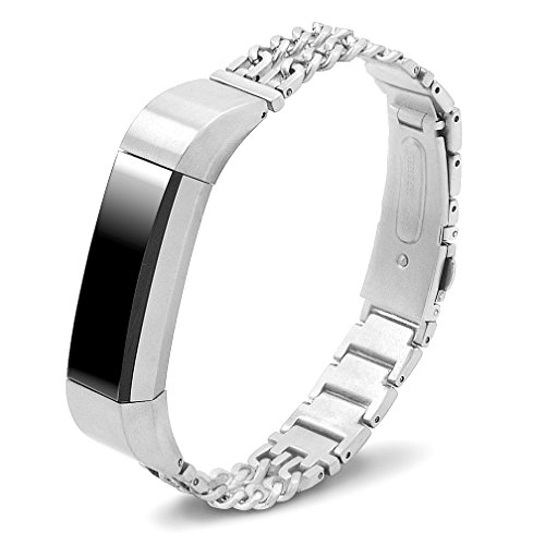 Fitbit Alta & Alta HR Band, Stainless Steel Chain Bracelet Strap Replacement Silver With Screen Protector Women Men for Fitbit Smart Fitness Watch Sport Accessories Wristbands