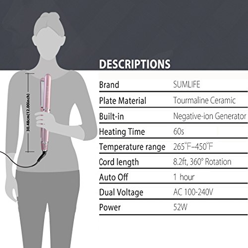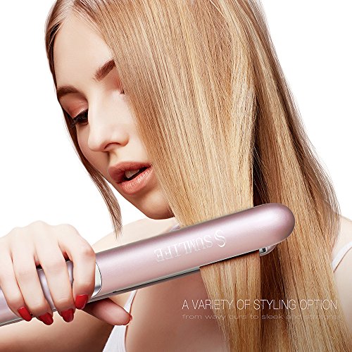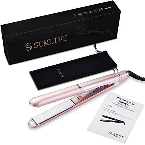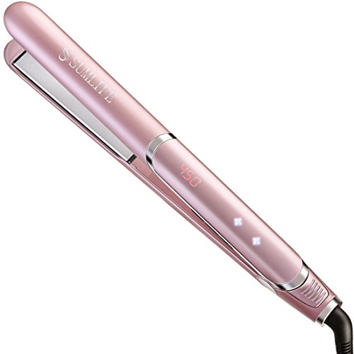 SUMLIFE Professional Ceramic Flat Iron Hair Straightener Tourmaline Ion with Digital Adjustable Temperature Dual Voltage for Travel, 1 Inch, Rose Pink