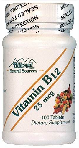 -. Binding : Health and Beauty -. Brand : Hillestad Pharmaceuticals -. Feature : Vitamin B12 (Cyanocobalamin) / Gluten Free / Natural Source / Made in the USA -. IsAdultProduct : 0 -. Label : Hillestad Pharmaceuticals -. LegalDisclaimer : *These statements have not been evaluated by the Food and Drug Administration. This product is not intended to diagnose, treat, cure or prevent any disease. -. Manufacturer : Hillestad Pharmaceuticals -. ProductGroup : Health and Beauty -. ProductTypeName : HEALTH_PERSONAL_CARE -. Publisher : Hillestad Pharmaceuticals -. Studio : Hillestad Pharmaceuticals -. Title : Vitamin B12 - 25 mcg - 100 Tablets