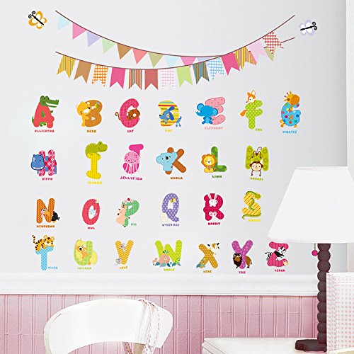 -. Title : Cartoon Animals English Graphic Alphabet Letters Wall Stickers Removable Wall Decal for Girls and Boys Nursery Baby Room Children's Bedroom
