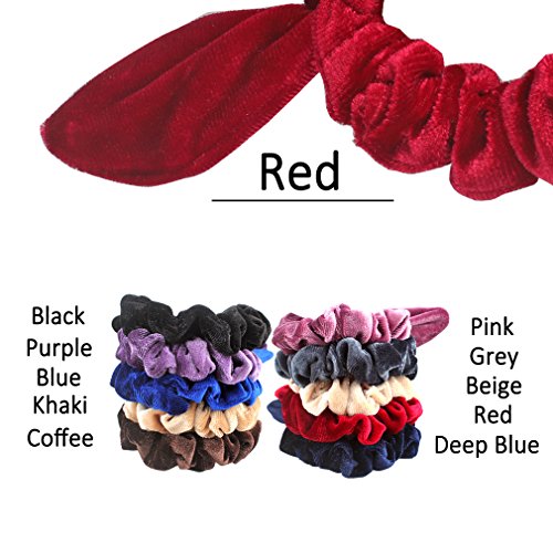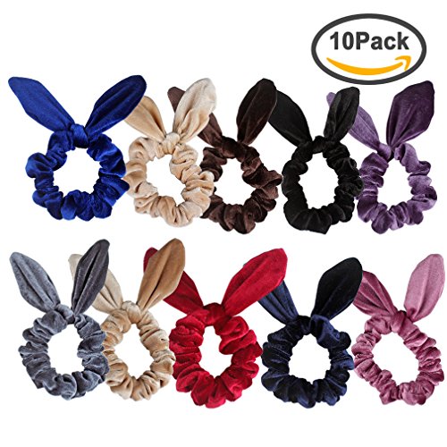 - Set of 10 Soft Rabbit Ear Style Fashion Velvet Hair Scrunchies Bobbles Elastic Hair Bands. Made of velvet fabric, stretchable and elastic, can fix your hair well and will not hurt your hair, easy and soft to wear.