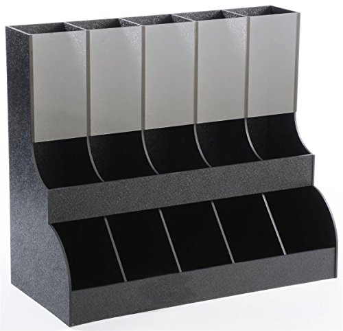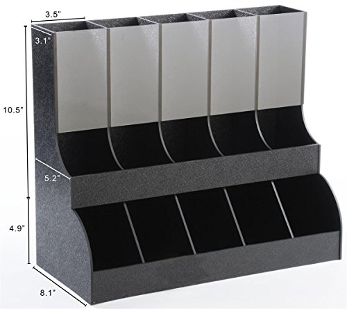 • Countertop k-cup organizer and dispenser can easily hold around 75 k-cups across a total of 10 compartments