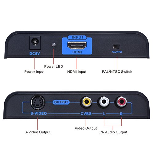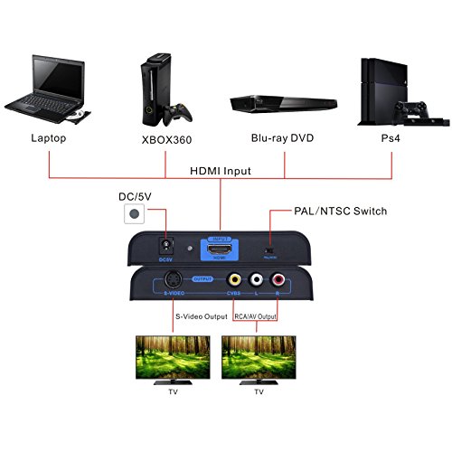 Goodes HDMI to RCA Converter HD 1080P Composite Video 3RCA AV S-Video CVBS R/L Audio Output S-Video Adapter Supporting PAL/NTSC for PC Laptop Xbox PS3 PS4 Camera Blue-Ray DVD Apple TV ROKU 4 Fire TV