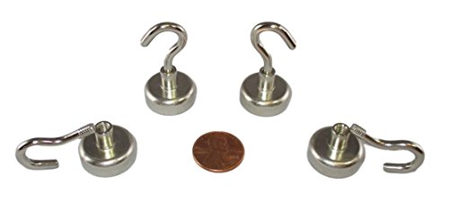 Manic Magnet (Pack of 4) Crazy Strong Hook Magnets, 25 Pound Pull Force, Neodymium Rare Earth Magnet - Our Magnets Are Crazy Strong!