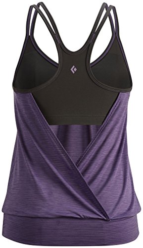 Pairing an integrated sports bra with a light, flowy and flattering tank top design, the Black Diamond Sheer Lunacy Tank accompanies you from deep-winter training sessions in the gym to warm and sunny outings on the rock. Removable pads allow for customizable support, and flat-seam construction reduces friction during dynamic or high-output training missions. The ultra-soft fabric also comes in handy for lounge-intensive rest days.Feature