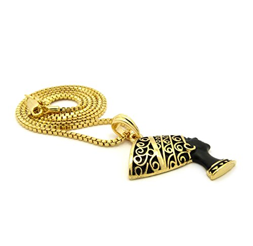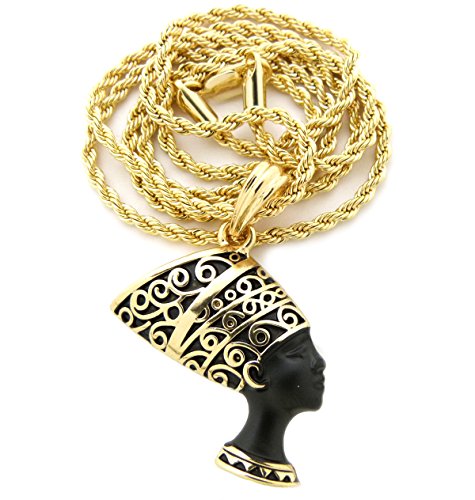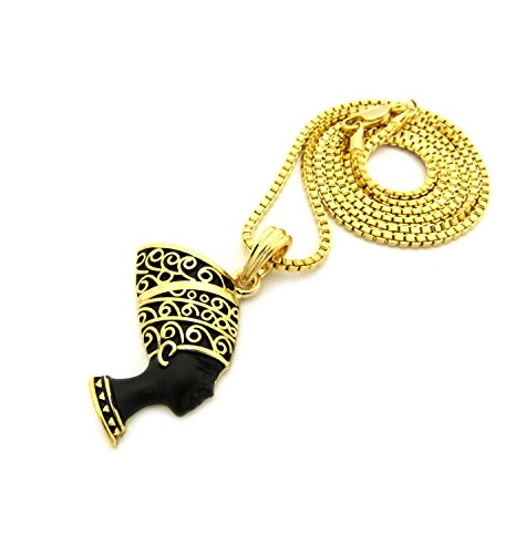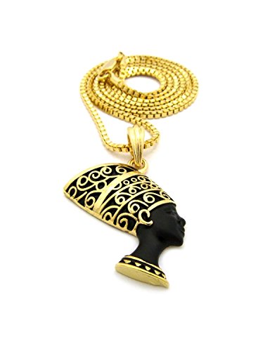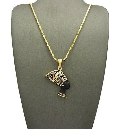 -. Feature : Unisex Egyptian Queen Nefertiti Pendant 20",22",24" Various Chain Necklace in Gold Black 2 Tone / Size of Pendant: 1.1" X 1.75" / Chain: 2mm 20", 24" Box Chain, 2mm 20",22",24" Rope Chain, 3mm 20", 24" Cuban Chain, 4mm 24" Herringbone Chain, 2mm 24" Franco Chain / Imitation Gold Tone Plated / Fashion Costume Jewelry