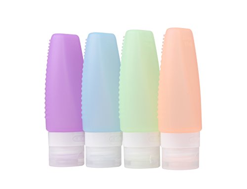 RoseFlower Leak Proof Silicone Travel Bottles Set - 3oz (78ml) 4 Pack TSA Approved Refillable & Squeezable BPA Free Silicone Containers with Waterproof...