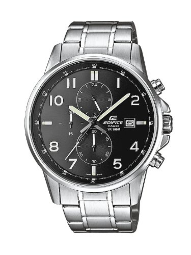 Brand, Seller, or Collection Name:Casio Model number:EFR-505D-1AVEF Part Number:EFR-505D-1AVEF Model Year:2011 Dial window material type:Mineral Display Type:Analog Clasp:Push Button Clasps Case diameter:45 millimeters Case Thickness:11 millimeters Band length:Men's Standard Band width:18 millimeters Band Color:Silver Dial color:Black Item weight:4.64 Ounces Movement:Quartz Water resistant depth:100 Meters