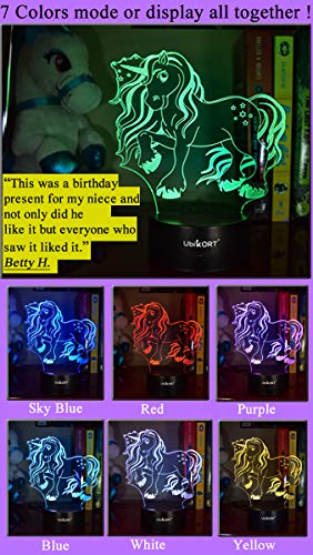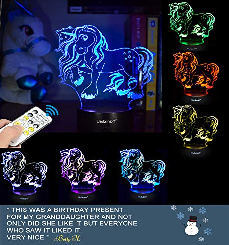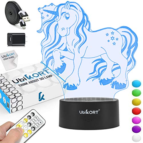 Item Weight:10.7 ounces Package Dimensions:8.6 x 6.1 x 2 inches Item model number:Ubik-1236 Color:Unicorn Style:Bedroom Decor Material:3D Acrylic Plate / ABS Black Base Pattern:Fantasy Unicorn Shape:Unicorn 3D Illusion Power Source:USB Wall Charger | 3 AA Battery Wattage:0.5 watts Special Features:IR Remote Control Usage:Girls Decoration Included Components:IR Remote Control, Micro USB Cable, USB Wall Charger, LED Base 10 Bulbs, Unicorn Flat Acrylic Design Batteries Included?:No Batteries Required?:Yes Warranty Description:Manufacturer warranty for 1 year from the date of purchase exclusive from ubikort®. Shipping Weight:10.7 ounces (View shipping rates and policies)