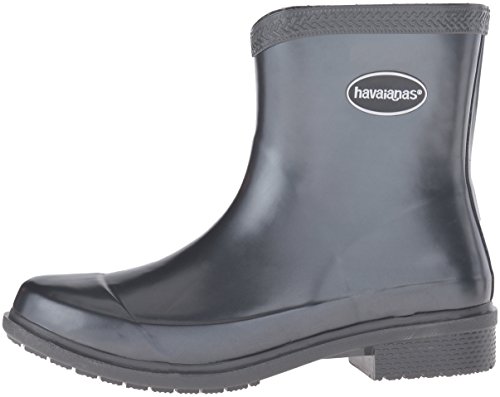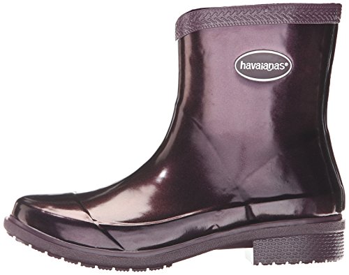 Studio : Havaianas Publisher : Havaianas Binding : Shoes Product Description Brave the wet weather in stylish comfort with havaianas rain boots. the chelsea boot style of the galochas low metallic lets you rock a high fashion look even on the stormiest days. featuring high-quality rubber with a metallic finish, a raised heel to add grip and flair, and a special brick pattern on the sole to prevent slippage. a soft cotton lining keeps feet comfortable all day long. finished with our greek key pattern, signature rice pattern around the heel, and a havaianas logo. 0