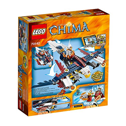 -. Feature : Enthält 3 Minifiguren mit passender Ausrüstung: Eris, Lagravis und Strainor / Mit riesigen verstellbaren Flügeln und Klauen für den ultraschnellen Flug- und Verteidigungsmodus, Feuer-CHI, Cockpit, 2 Raketen, Adlerkopf-Detail und durchsichtigen Feuerelementen / Außerdem sind eine Eishöhle und ein blaues CHI enthalten / Als Ausrüstung sind ein Fethaburner für Eris, ein Frostbytor für Strainor und ein Fire Valious für Lagravis enthalten / Setze Eris ins Cockpit und hebe ab in die Lüfte