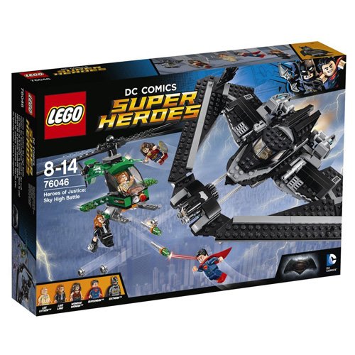 -. Feature : Enthält 5 Minifiguren: Batman, Superman, Wonder Woman, Lex Luthor und Lois Lane. / Der Batwing verfügt über ein aufklappbares Cockpit, ausklappbare Flügel zum Fliegen und Landen sowie einen sechsschüssigen Schnellfeuer-Shooter. / Lex Luthors LexCorp-Hubschrauber verfügt über ein aufklappbares Cockpit für Lex Luthor, drehende Rotoren, 8 Kryptonit-Raketen sowie einen Befestigungspunkt, an dem sich Lois Lane unter dem Hubschrauber festhalten kann. / Benutze Batmans Enterhakenwerfer, Wonder Womans Schwert und Schild und Lex Luthors p.i.s.t.o.le, um die Auseinandersetzung am Boden fortzusetzen. / Auch Lois Lanes Kamera ist in dem Set vorhanden.