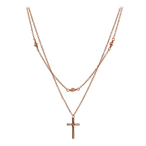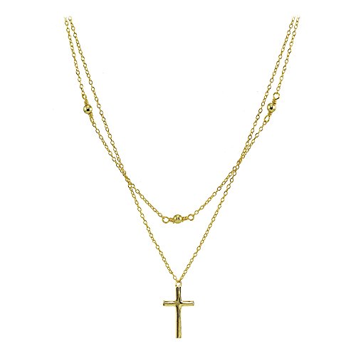 FEATURE - This attractive necklace features a thin choker chain and necklace; showcasing a fashionable layered style. There are 3mm polished beads stationed on the choker, and a polished cross dangling off the necklace.