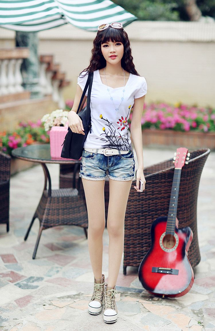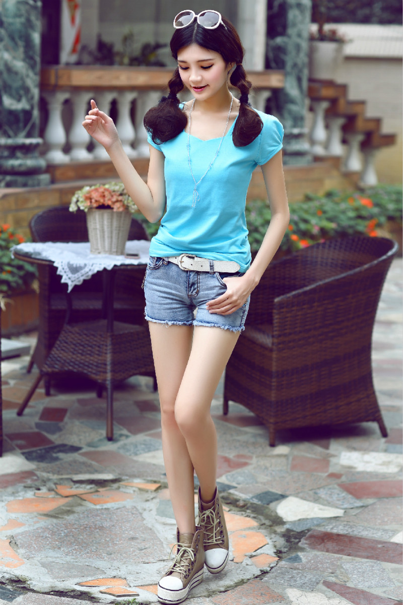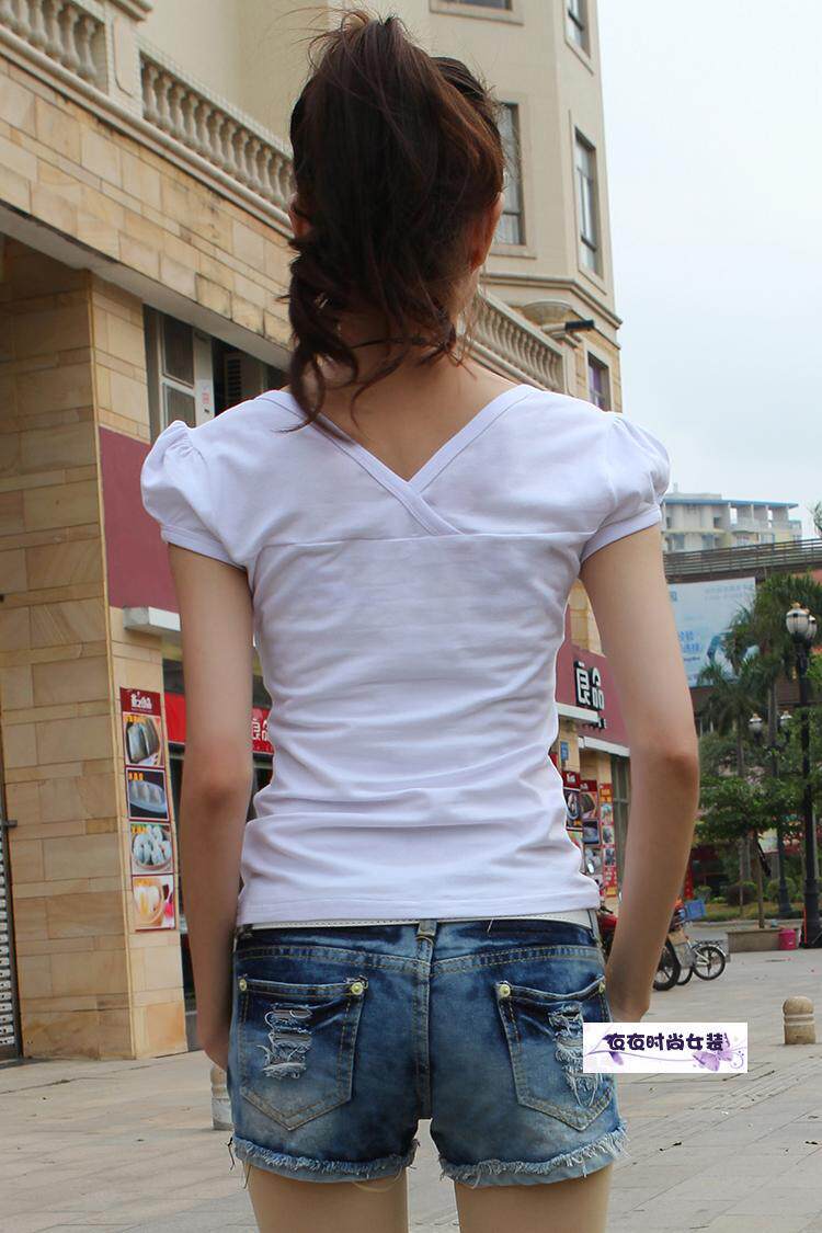 | ?试穿四 : ?身高165 ?体重110 胸围88 腰围74 ? L ?正好 搭配牛仔短裤很休闲? |