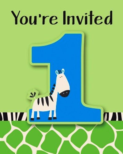 8-Count Party Invitations, Wild at One Zebra