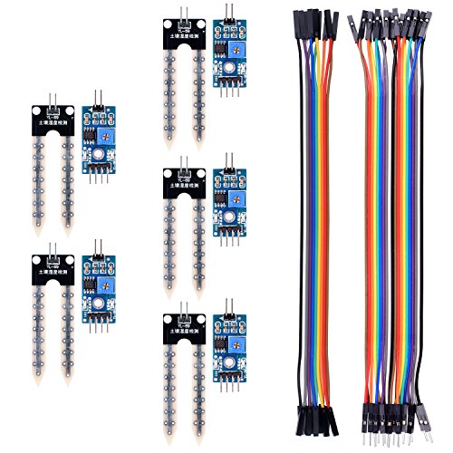 kuman 5PCS Soil Moisture Sensor Kit Compatible with Raspberry pi Arduino Uno R3 Mega 2560 with 10PIN Female to Female Jump Cables 20PIN Male to Female DuPont Jump Cable Automatic Watering System KY70