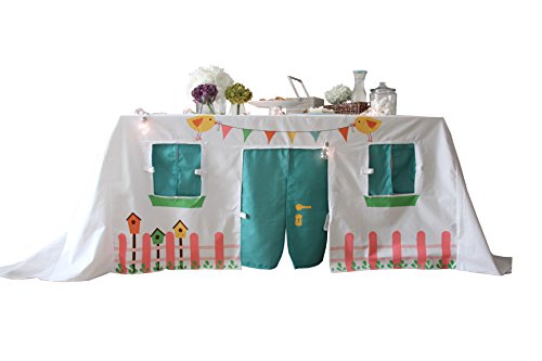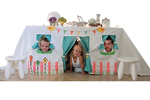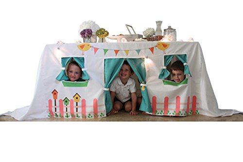 Studio : FJhomedesign Publisher : FJhomedesign Binding : Toy Product Description Tired of having playtents using most of your home space?Hate assembling and disasembling? How many times have you found your children playing and exploring under your dining table? Fjhomedesign offers you a unique tablecloth design that will turn your dining table into a beautiful playhouse where children can play, dream, explore and celebrate. No need of extra space, and no assembling!!! It can be used as a decoration for outdoor and indoor parties where kids will spend hours of entertainment. Kids will love it! The length of your table can be smaller than tablecloth, it will just have the sides longer. Our company gives you 100% money back guarantee, no questions asked! Fits rectangle tables from 55'x30.7' in to 70'x30.7' in 0