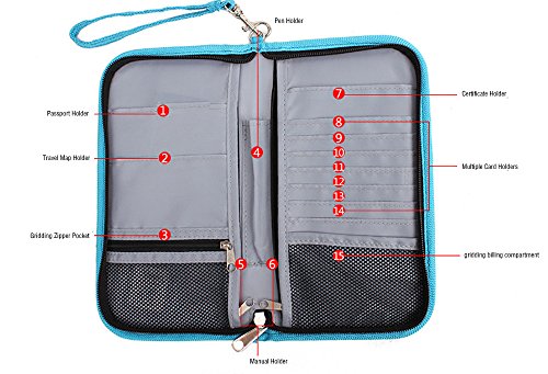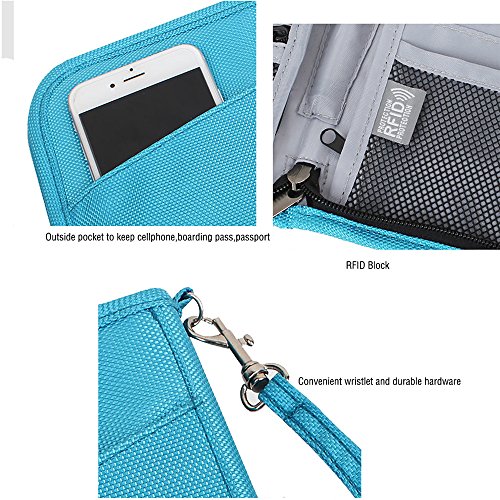 -. Feature : High density nylon, with waterproof function which takes good protection of inner stuff. / WANT TO TRAVEL SAFE - Our Passport Holder and RFID Travel Wallet blocks RFID signals and protects your valuable information stored on RFID chips on credit card, passport etc. from unauthorized scans providing you with privacy and security. / AWESOME FEATURES - Our RFID Passport Holder will meet all your travel needs. Easily fits in passports of all countries and boarding pass without bending them. This stylish travel wallet is simple, compact, lightweight, zipper closure, specially designed waterproof and RFID blocking function ,also we can call it all in one organizer for convenient and safe travelling ,it holds your credit cards, cash, coins,passport,boarding pass, ball pen ,certificate and other necessary stuff when travelling . / DURABLE AND FRIENDLY - Our RFID blocking passport holder/travel wallet comes with a high quality material which is easy to wash and care. Keeps all your travel accessories organized and makes it easy to find and pick. / Product dimensions: (L)9.8" x (W)5.9" x (H)0.8" inches ,and the weight is 0.34 bounds .