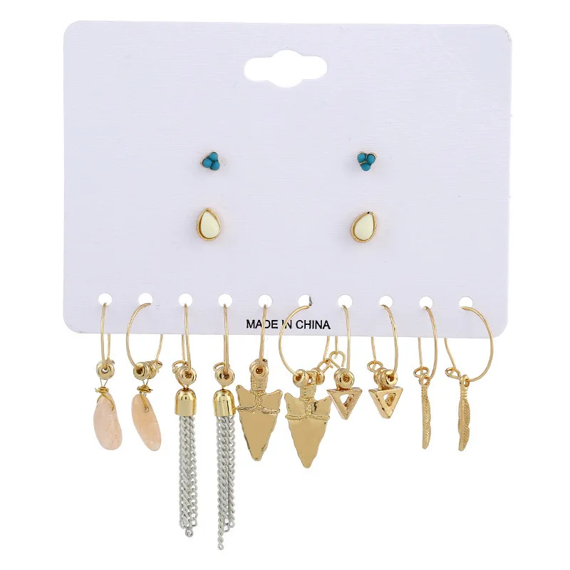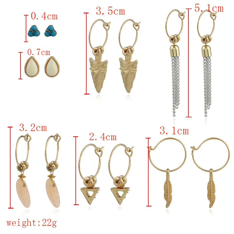 Fit :Chain Triangle Feather Stone Earring