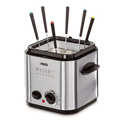 -. Title : Princess 2-in-1 Edelstahl Fondue Set - Mini-Fritteuse und klassisches Fondue in Einem inklusive 6 bunt markierter Fonduegabeln