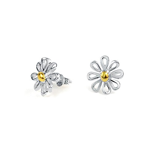 Daisies can be found everywhere on earth except Antarctica, even in your jewelry box with these playful two toned, 12mm stud earrings. Made of sterling silver and gold plating these 3D studs are a great gift for anyone with pierced ears.