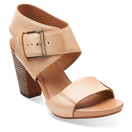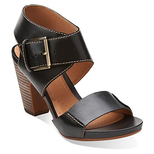 Add a little architectural styling to your look with the Okena Mod from Clarks artisan. A chunky stacked-effect heel, wrap buckle fastening, and decorative considered stitch detail make this a standout shoe, while soft leather brings timeless appeal. Wear with a simple dress or sharp tailoring and draw attention to your feet. A great city sandal for day to nightFeature