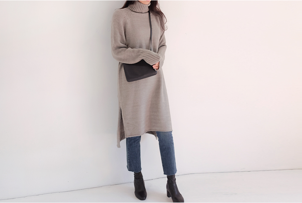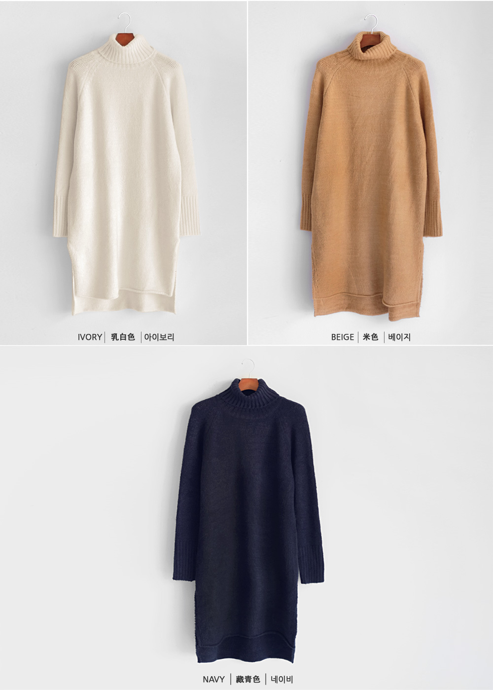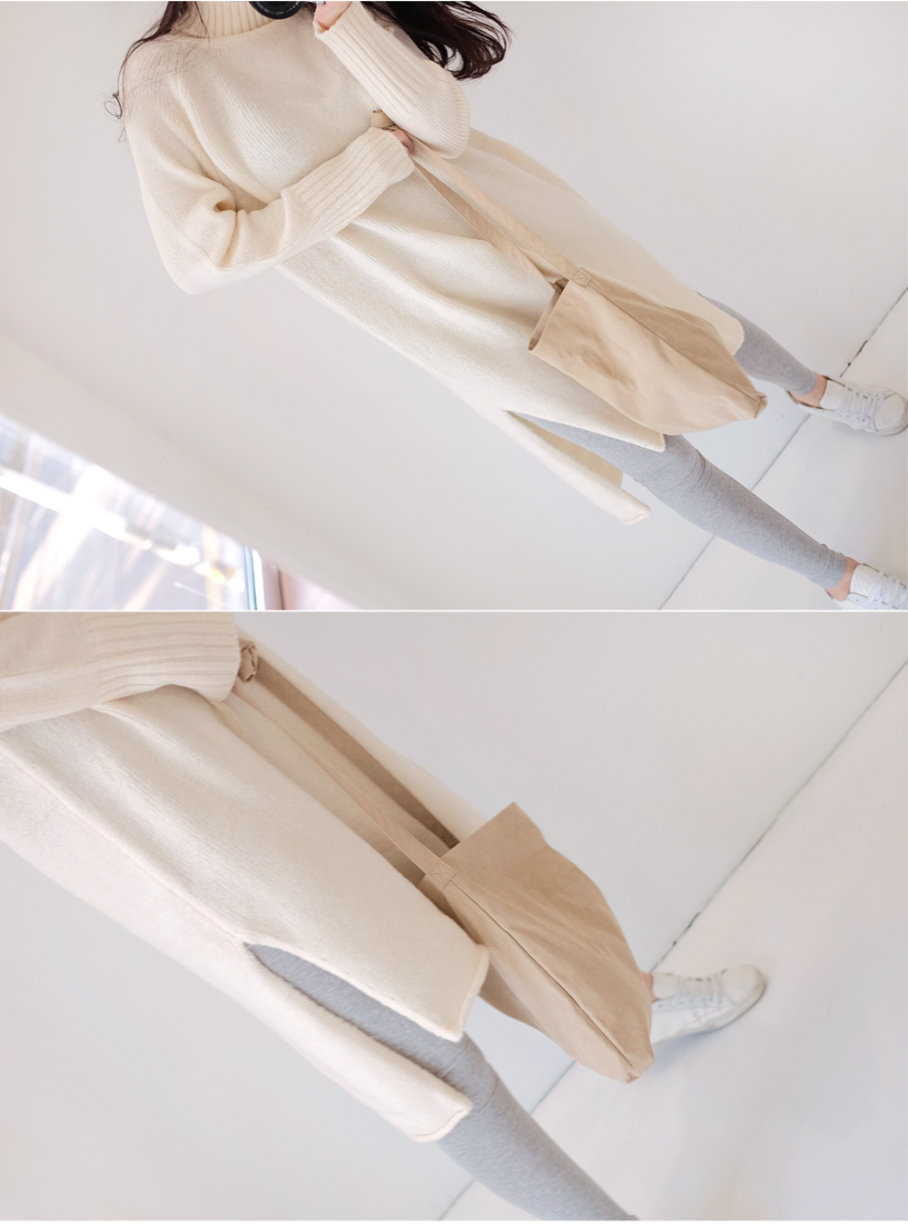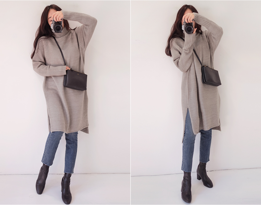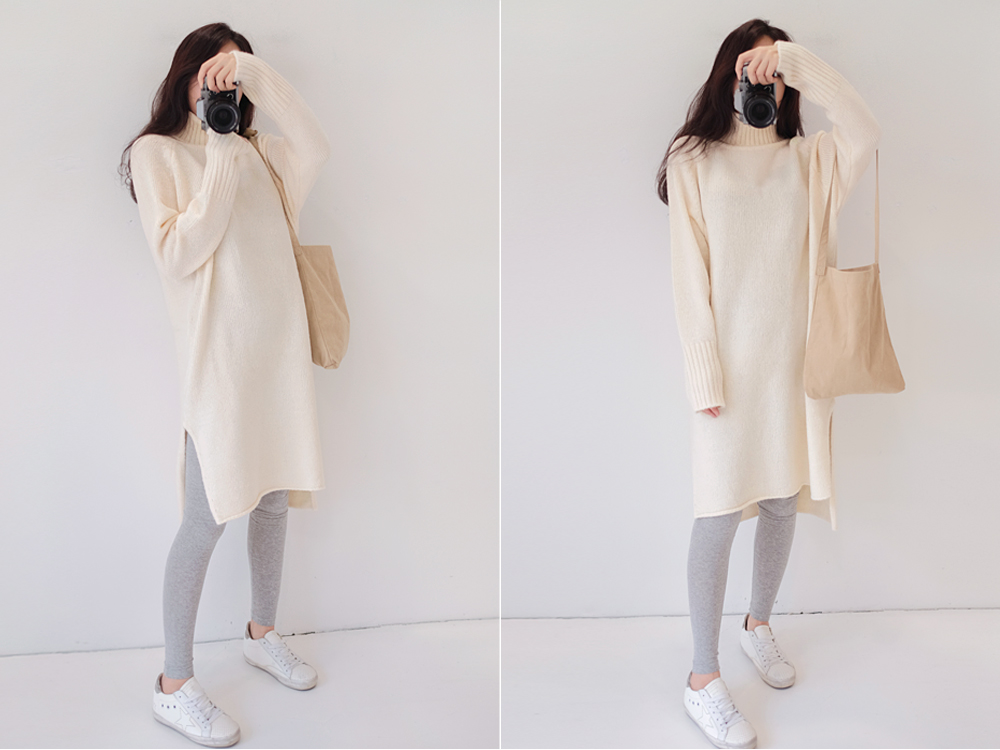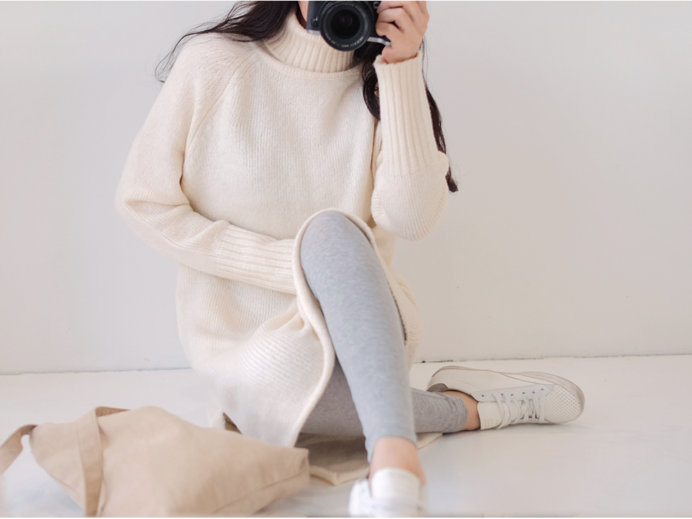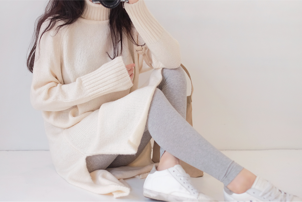 부드럽고 두께감있는 소재와 높게 올라온 터틀넥이 굉장히 따뜻하답니다:)