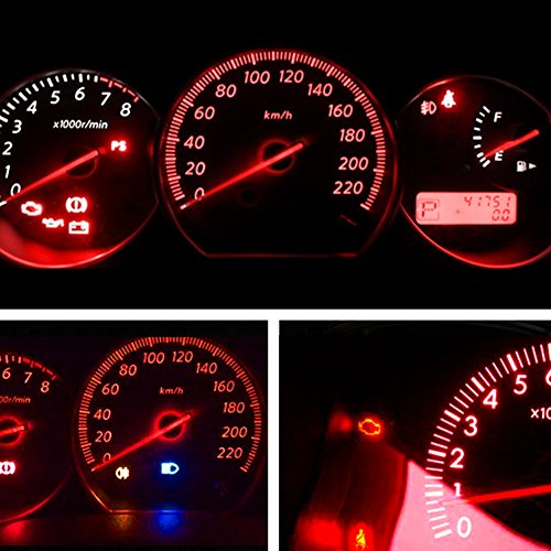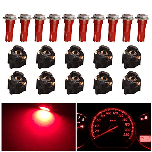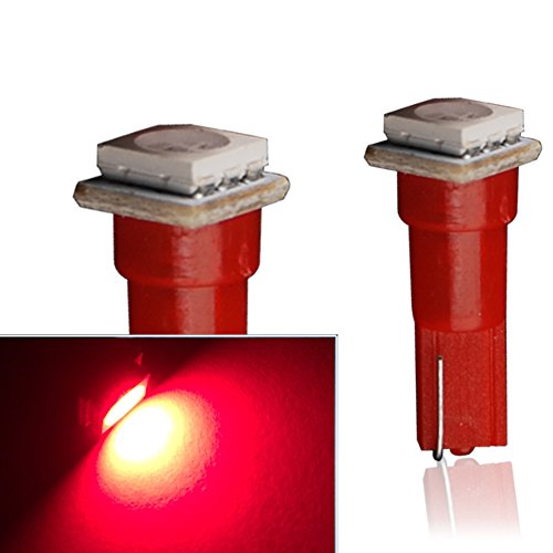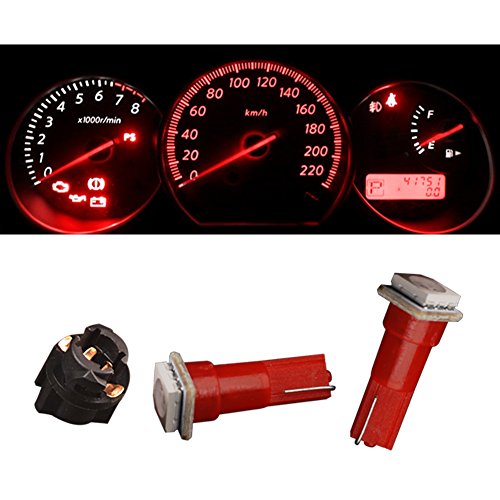 oEdRo 10 X Pure Red Twist Socket T5 1-SMD 5050 LED Gauge Cluster Bulbs Dashboard Light Lamp Instrument Panel Indicators 73 74