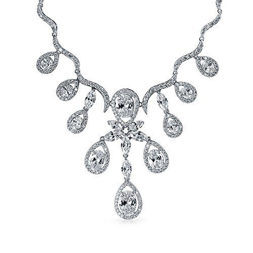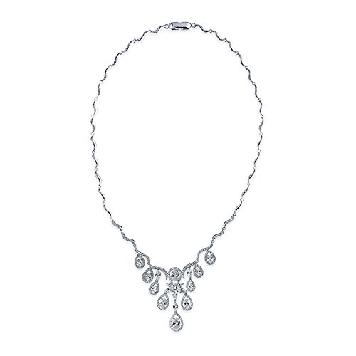 Here comes the bride, all dressed in rhodium plating and sparkling CZ. This 16in wedding necklace has Victorian style and teardrop CZ cascading from a wave style chain. She'll be tempted to wear this 2.91in drop necklace even after the wedding.